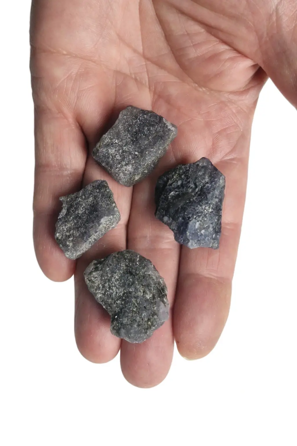 İşlem görmemiş, tamamen doğal iyolit taşı küçük parçalar.