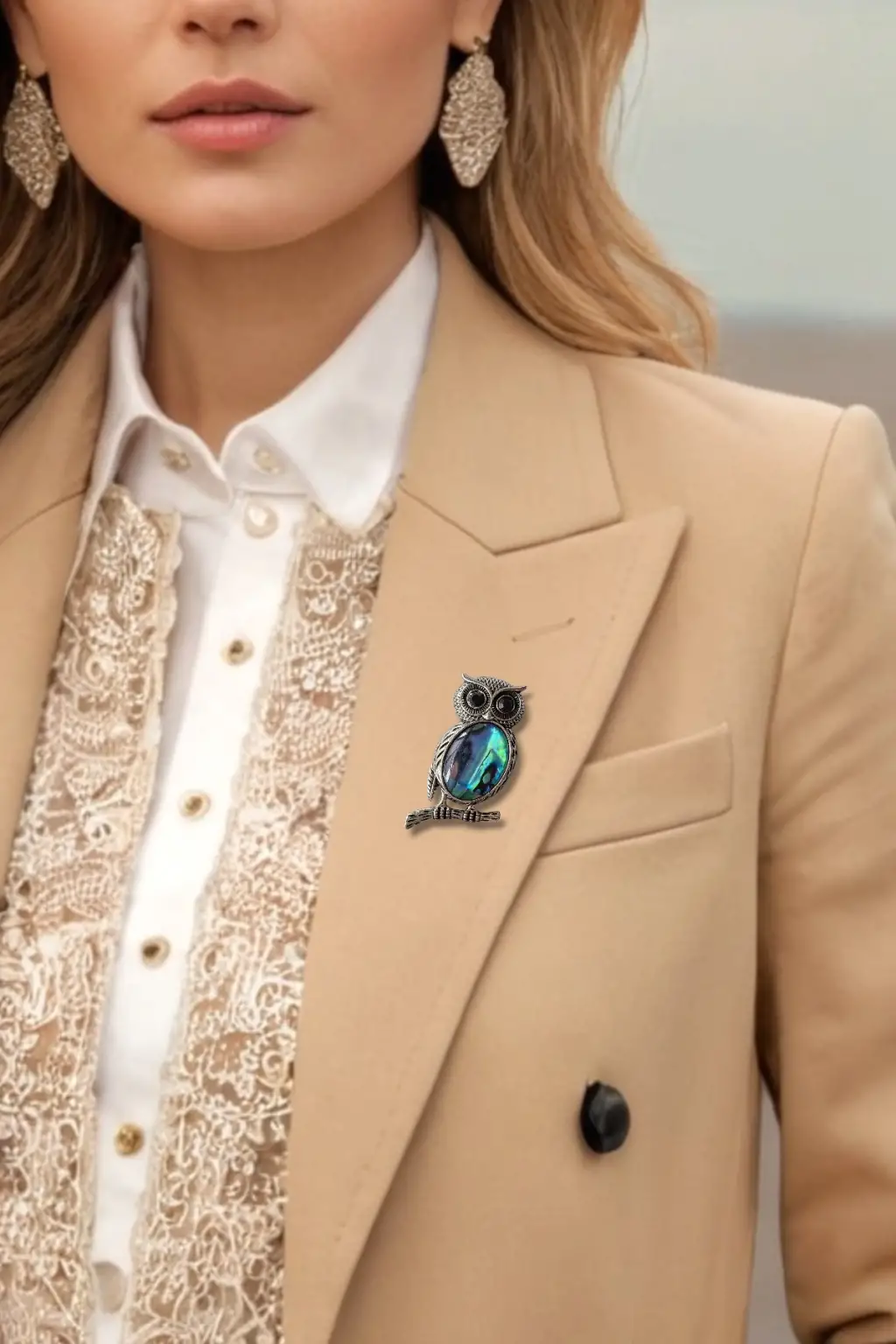 Abalon Shell Baykuş Motifi Sedef Broş BR10-3