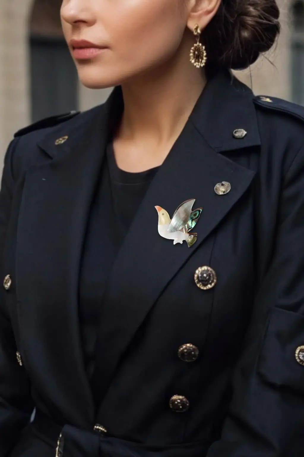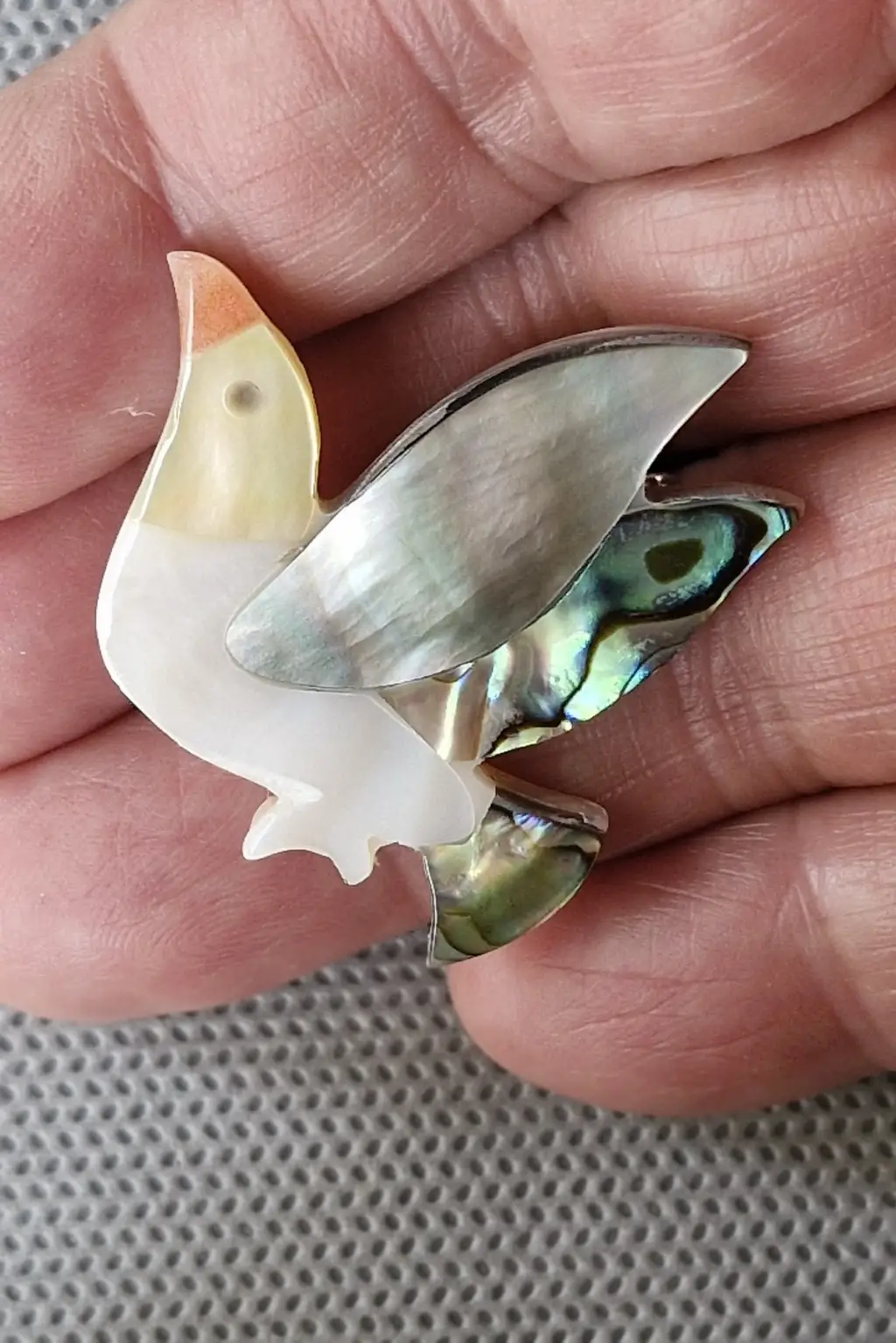 Abalon Shell Kuş Motifi Sedef Broş BR10-5