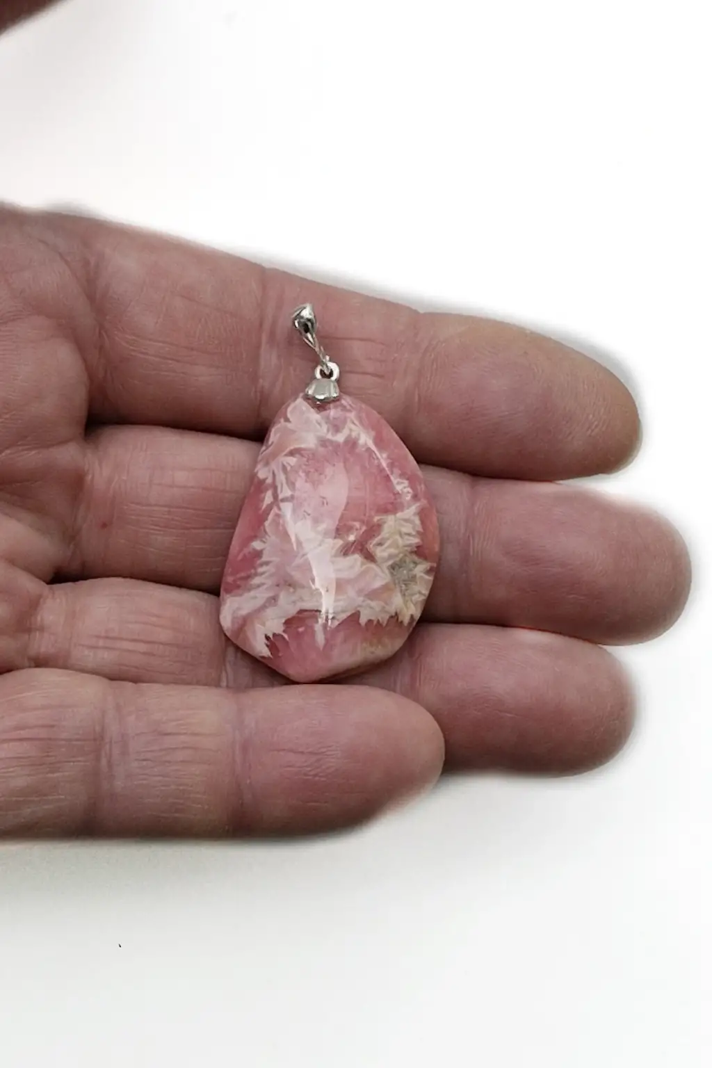 Doğal Rodokrosit Kolye Ucu Gümüş Malzemeli 400-23