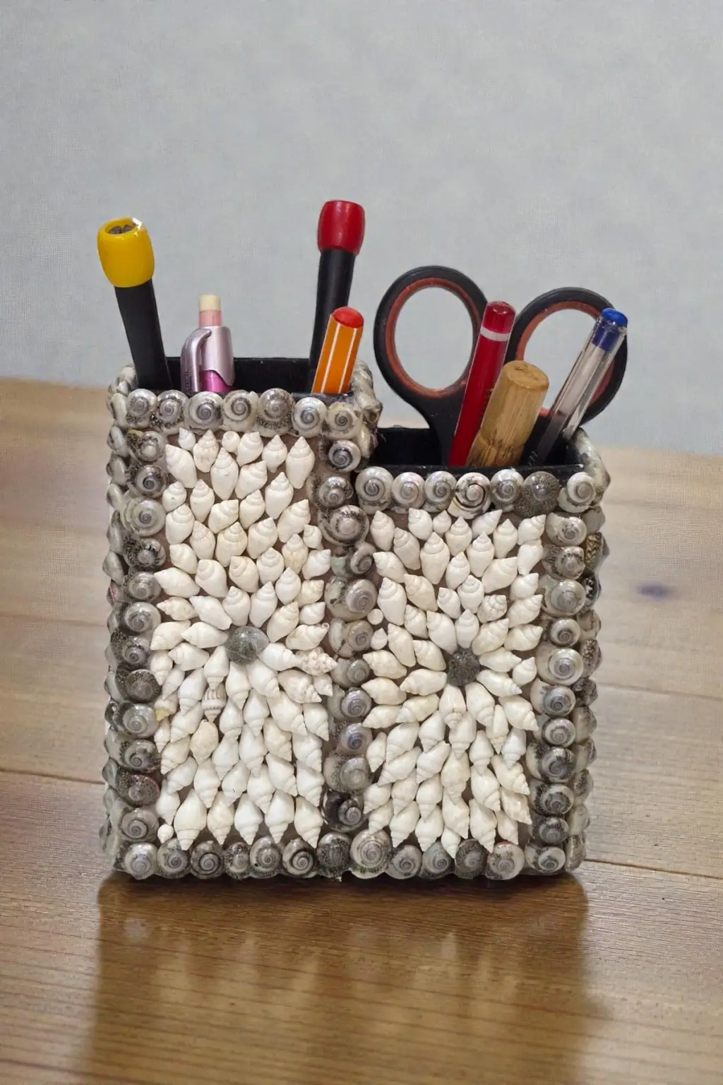 Gerçek Deniz Kabuklarından Yapılmış Masaüstü Kalemlik