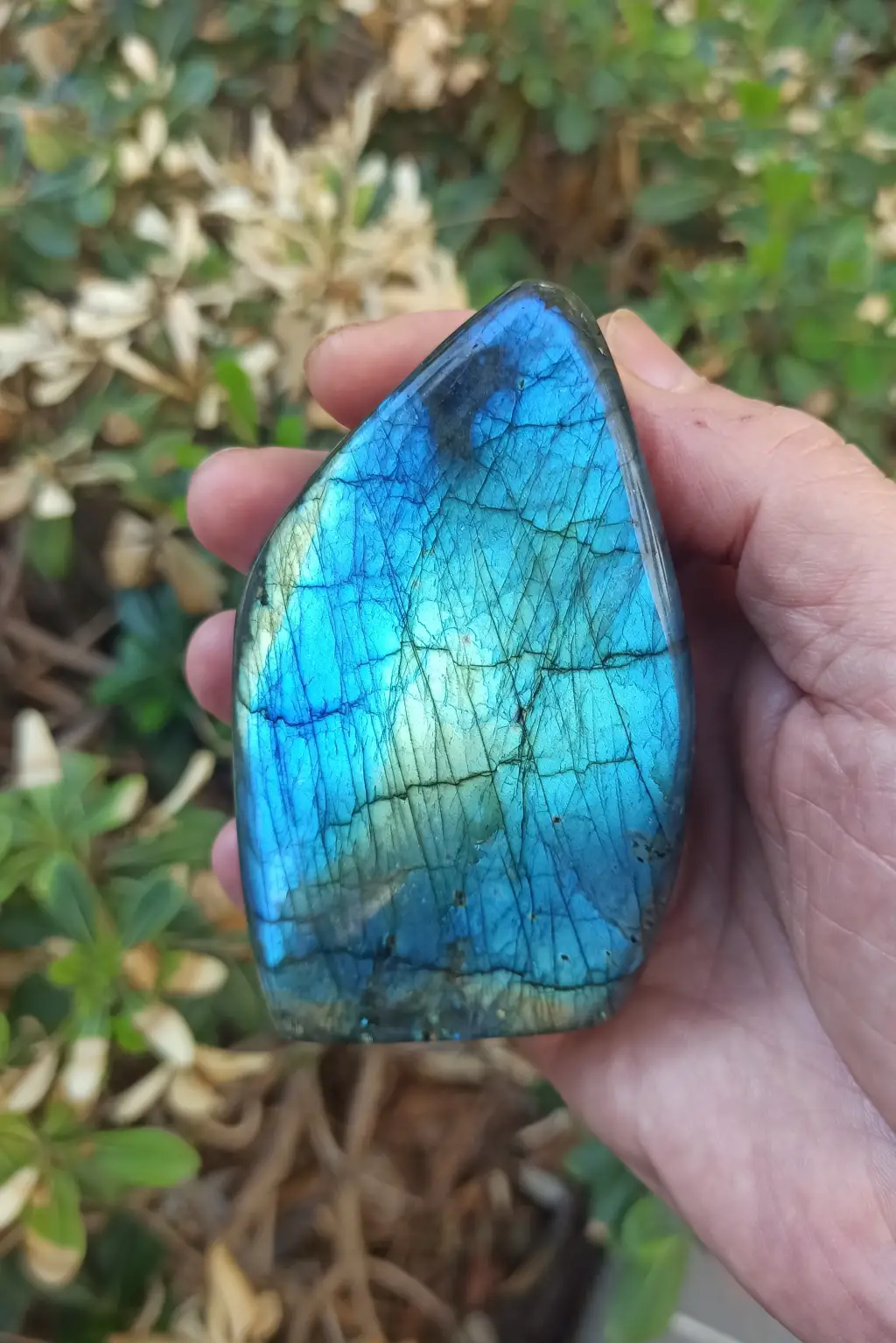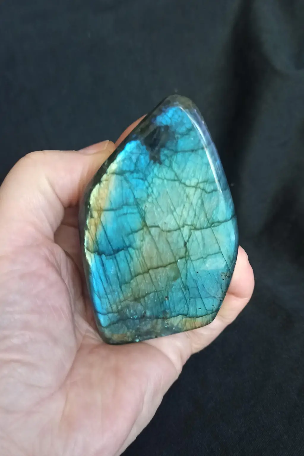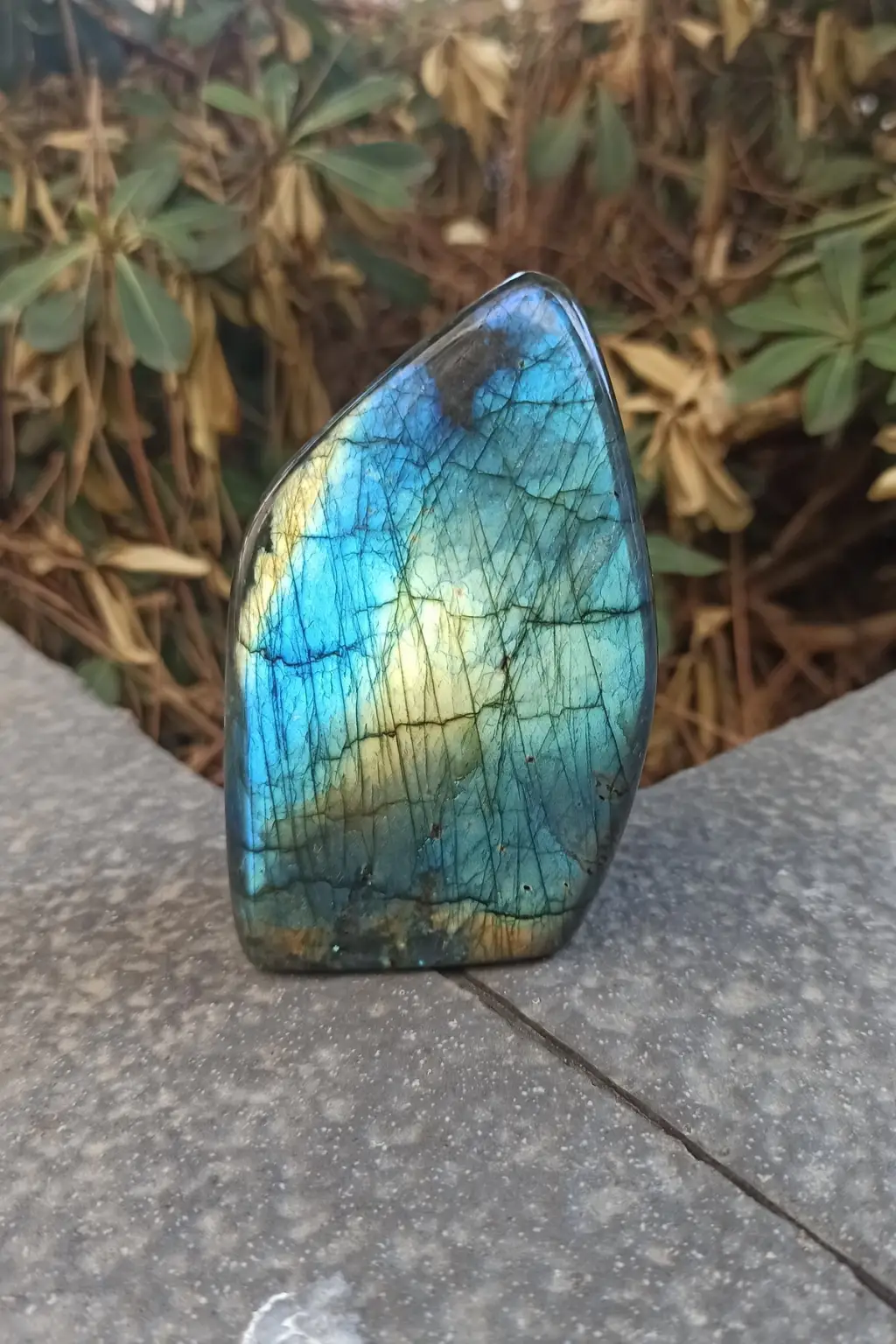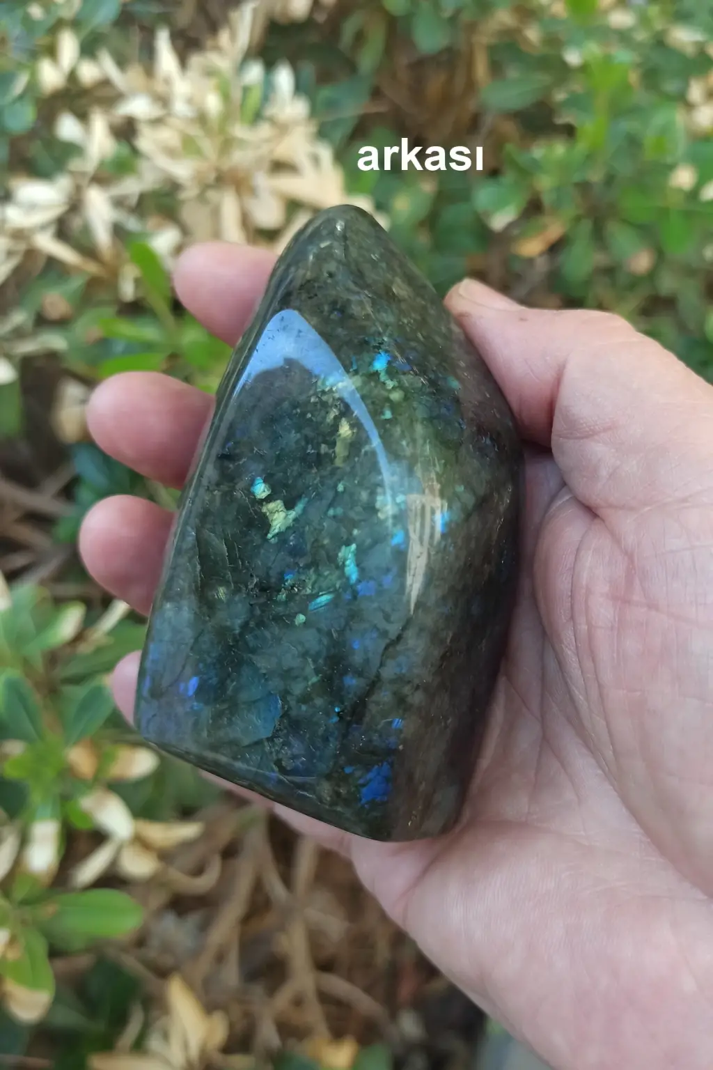 Aldığı ışığa göre yüzeyinden ışıltılar saçan doğal labradorit parça.