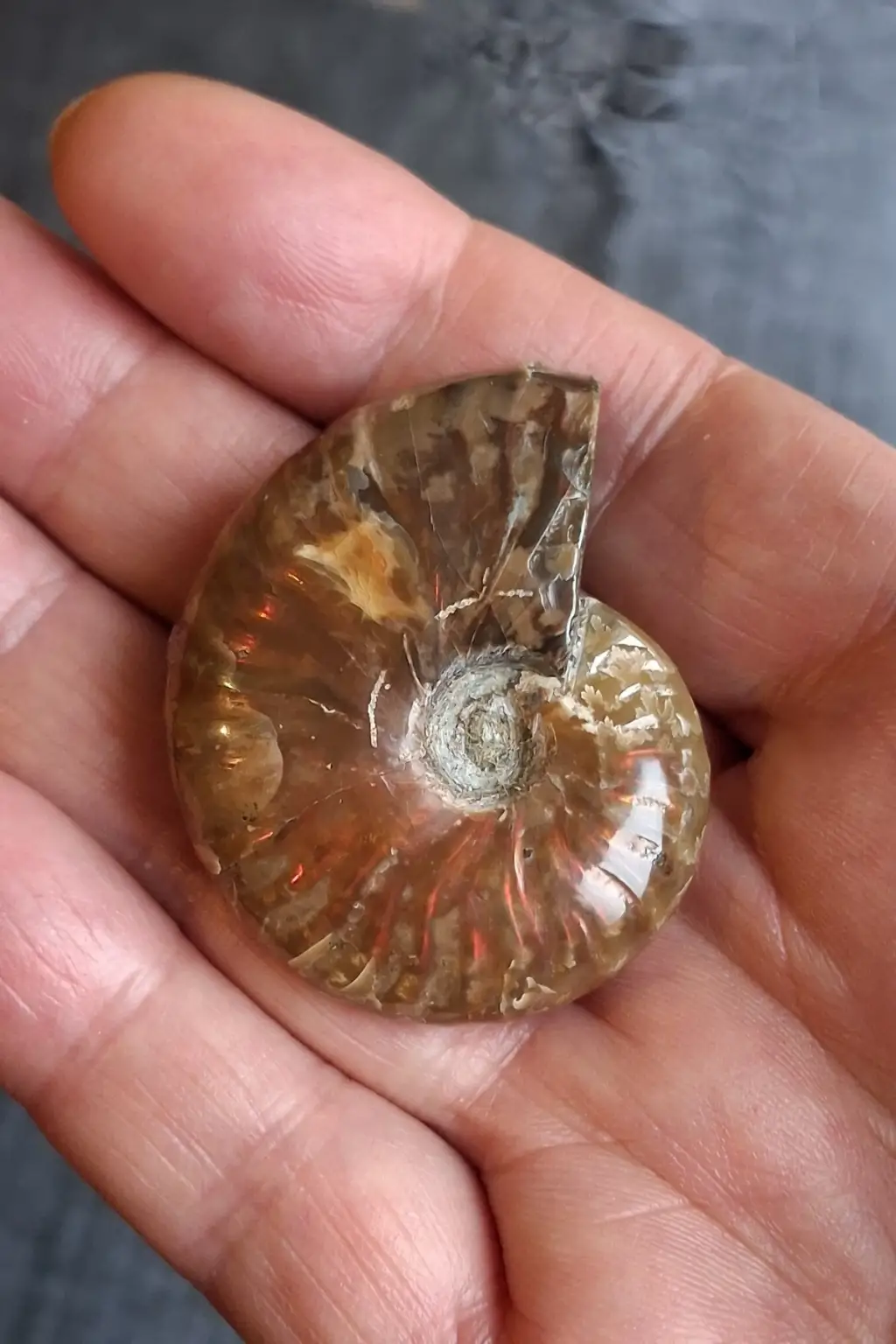 Milyonlarca yıl içinde, dış kabuğu opalize taşa dönüşmüş, koleksiyonluk bir parçadır.