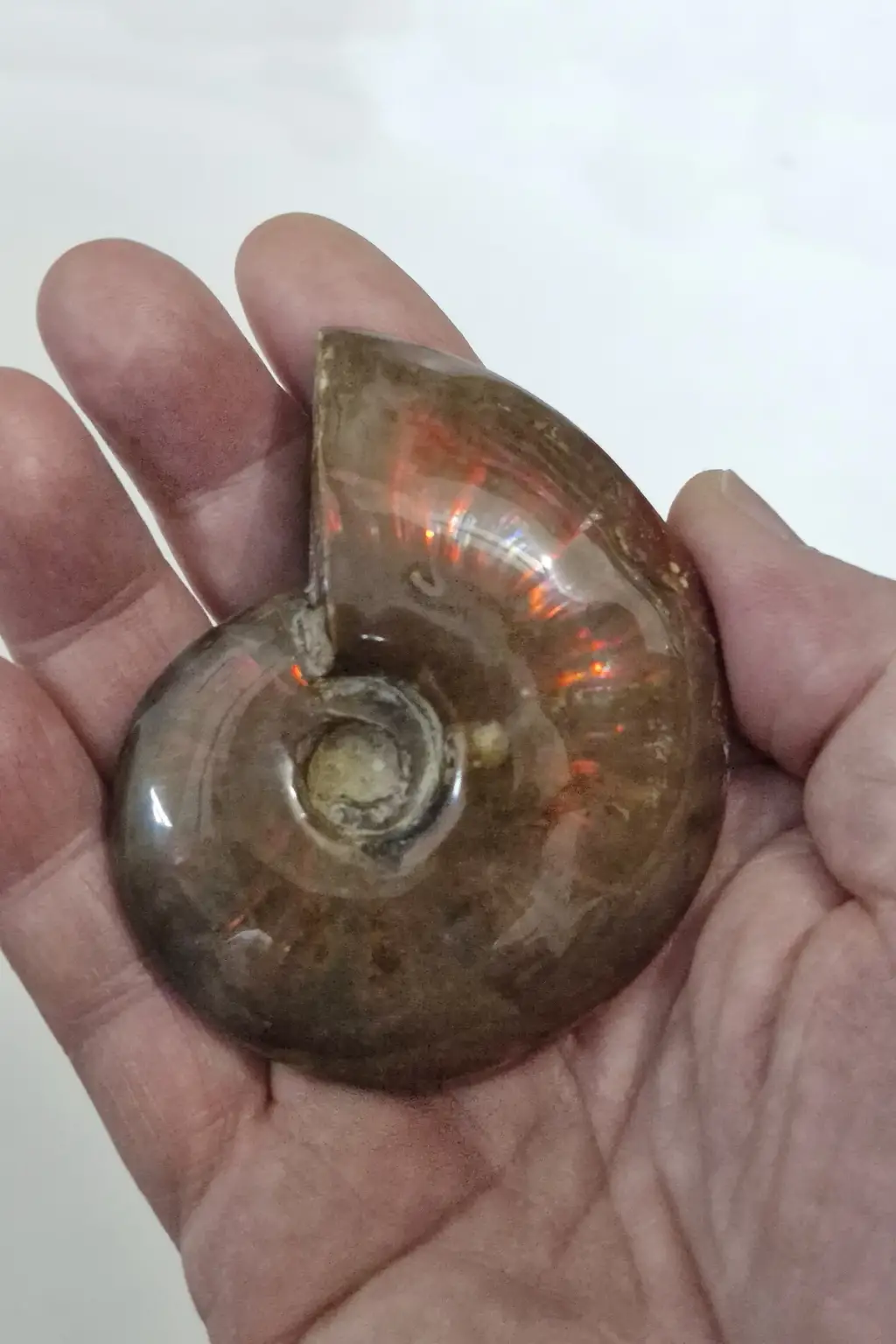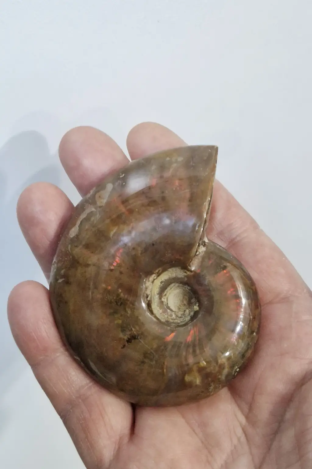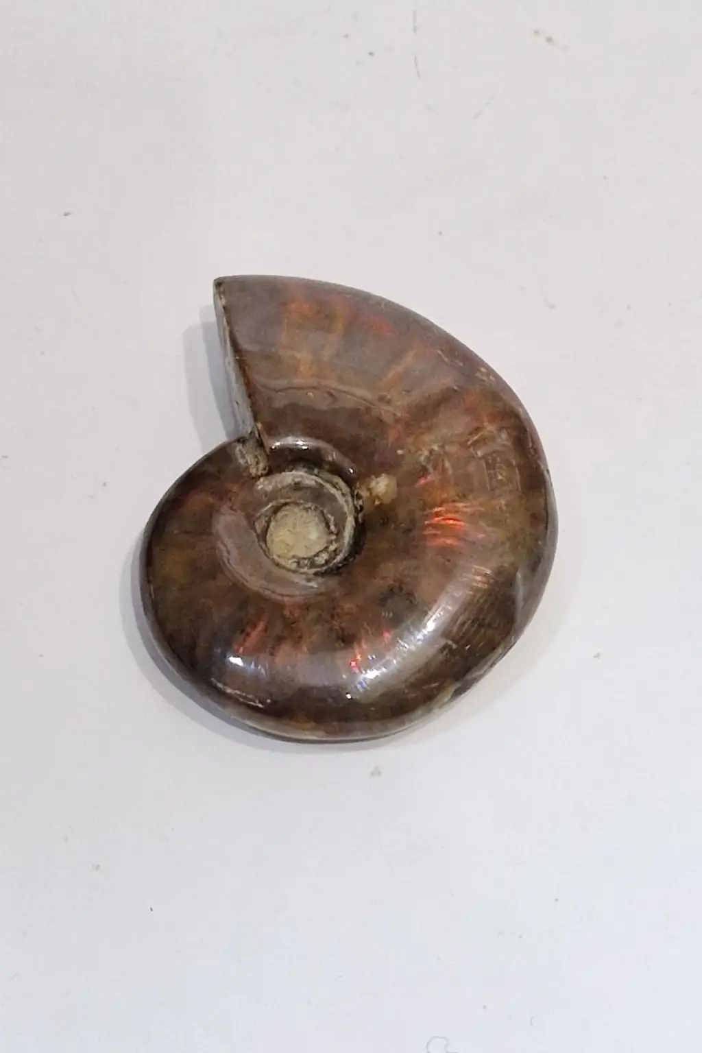 Milyonlarca yıl içinde, dış kabuğu opalize taşa dönüşmüş, koleksiyonluk bir parçadır.