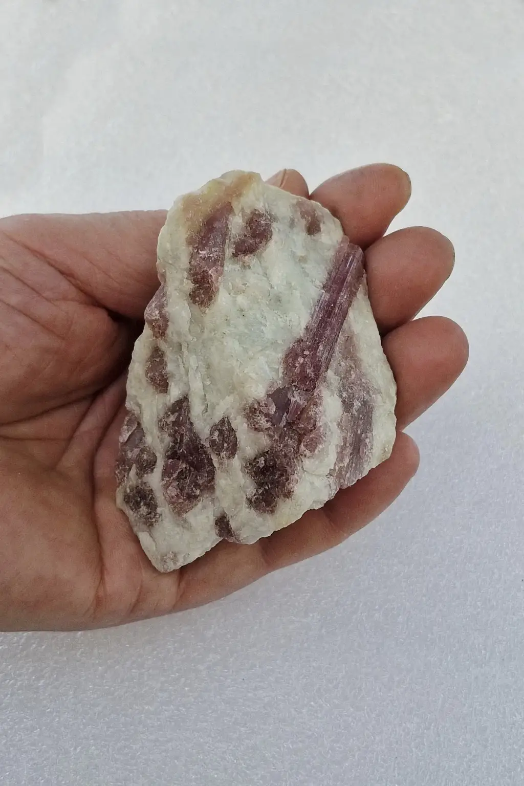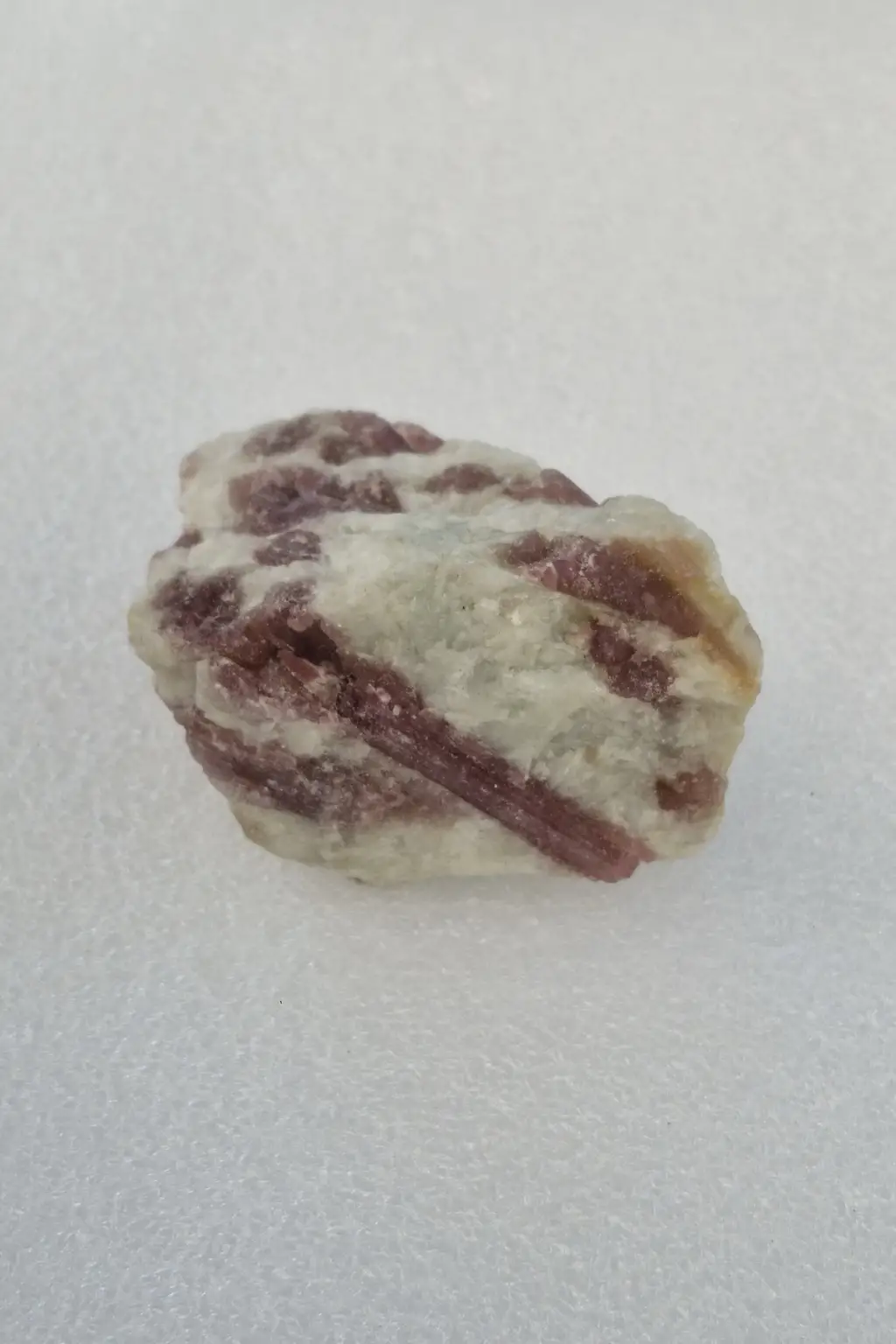 Turmalin, genellikle kuvarsların arasında çubuk şeklinde, damarlar halinde olur. Çeşitli renkleri olabilir. Pembe renkli olan bu türüne rubelit de denir.